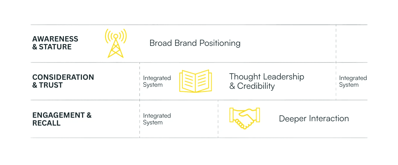 Defining strict narrative lanto prevent internal cannibilization - leadership and platform roles defined so all touchpoints work as one system.
